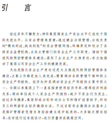 安全生产是煤炭企业最重要任务之一。经济激励机制是煤炭企业广泛使用,调动职工安全生产积极性的重要手段。本书从理论和实践两个角度对经济激励机制进行了研究,主要内容包括国内外煤炭企业安全经济激励现状、安全经济激励机制理论、神华集团对煤矿安全经济激励机制案例分析、神华集团煤矿内部安全经济激励机制案例分析、安全经济激励机制对生产与安全的影响等,未来煤炭企业改进安全生产经济激励机制的建议等。
